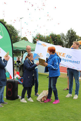 Zur Einweihung unserer neuen Laufbahn begrüßte die 1. Vorsitzende Ilka Knoke Bürgermeister Jan Dingeldey. Er beglückwünschte die SV Arnum zum neuen Schmuckstück der Sportanlage. Die Stadt Hemmingen hatte die rund 110.000 Euro teure Anlage zu einem Drittel bezuschusst. Der Bürgermeister ließ sich die Gelegenheit nicht nehmen, als einer der ersten unserer neuen Vereinsheldin Katrin Tilly zu gratulieren. Mit diesem Titel ehrte Dagmar Ernst vom Regionssportbund in diesem Jahr unsere stellvertretende Leiterin der Turnsparte. Mit dieser Aktion werden ehrenamtliche engagierte Menschen geehrt, die sich mit viel Herz und Leidenschaft für ihren Verein einsetzen und häufig vor allem hinter den Kulissen arbeiten. Sichtlich gerührt nahm Katrin die Auszeichnung entgegen. Wir sagen an dieser Stelle noch einmal ein großes Dankeschön für dein Engagement und freuen uns auf eine weitere gute Zusammenarbeit!