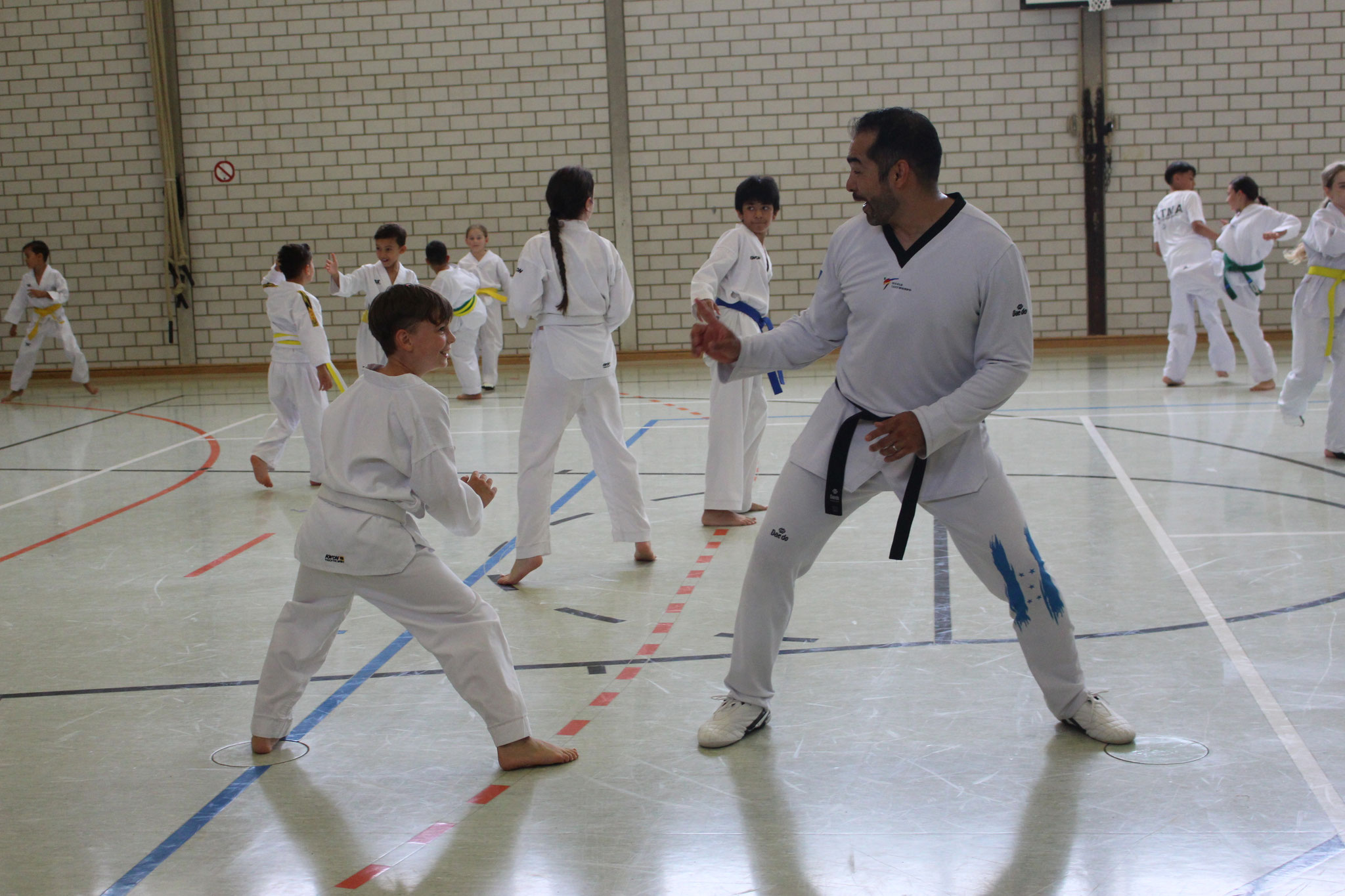 NTU Landestrainer Ivan Bulanovic, früherer mehrfacher Deutscher Meister übernahm nach einem gemeinsamen Aufwärmen die Höhergraduierten, u. a. unser Landeskadermitglied Mona, und zeigte abwechslungsreiche Übungen am Schlagpolster, hochwertiges Partnertraining aus dem Bereich Situationssparring im Sinne aktuell typischer Sequenzen im Vollkontaktkampf und begleitete seine Gruppe mit vielen wertvollen Tipps durch das Sparring. Chef-Landestrainer Rakip Dumlu war stets beobachtend dabei.