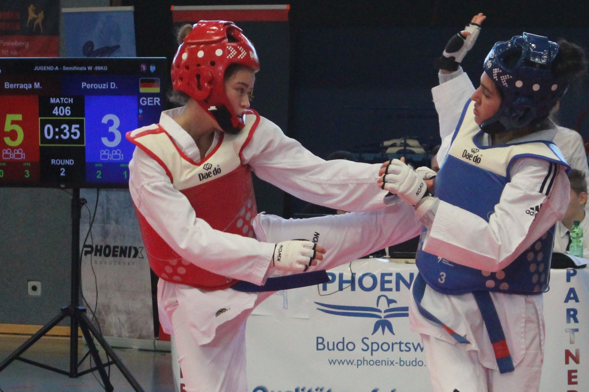 Mona bestritt ihren Halbfinalkampf der A-Jugend bis 55 kg gegen Yaren Ekici. Nach anfänglichem Rückstand durch eigenen Fehler gegen die gleichrangige Gegnerin aus Hildesheim in der ersten Runde konnte Mona sich umstellen und die zweite Runde problemlos per Point Gap bei 16:4 sowie die dritte Runde nach einer Minute per KO durch Gesichtstreffer und somit das Halbfinale gewinnen.