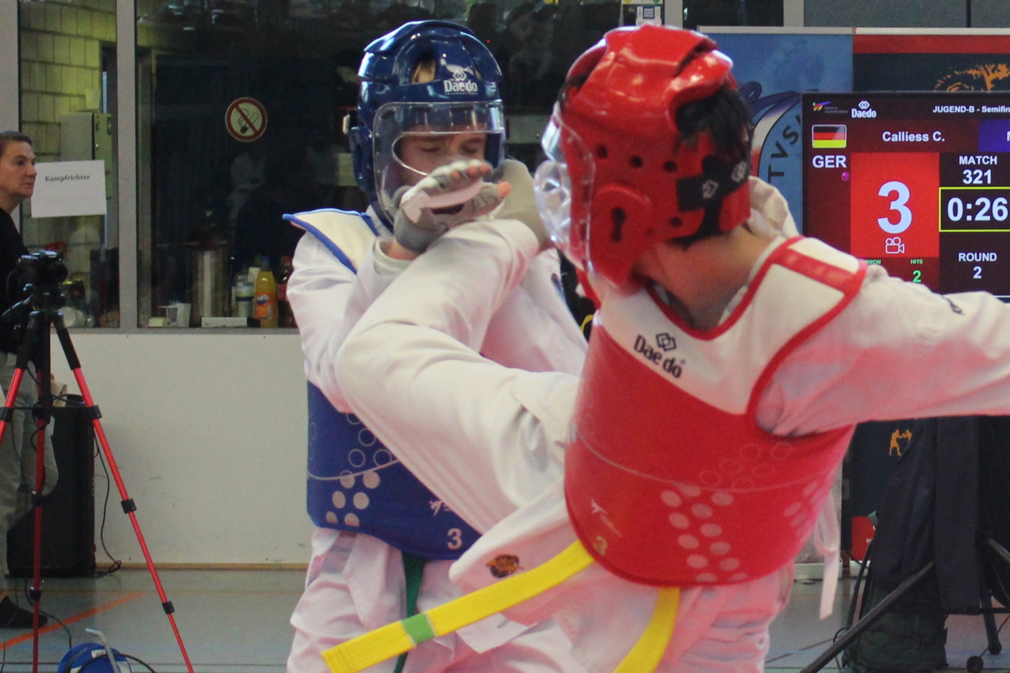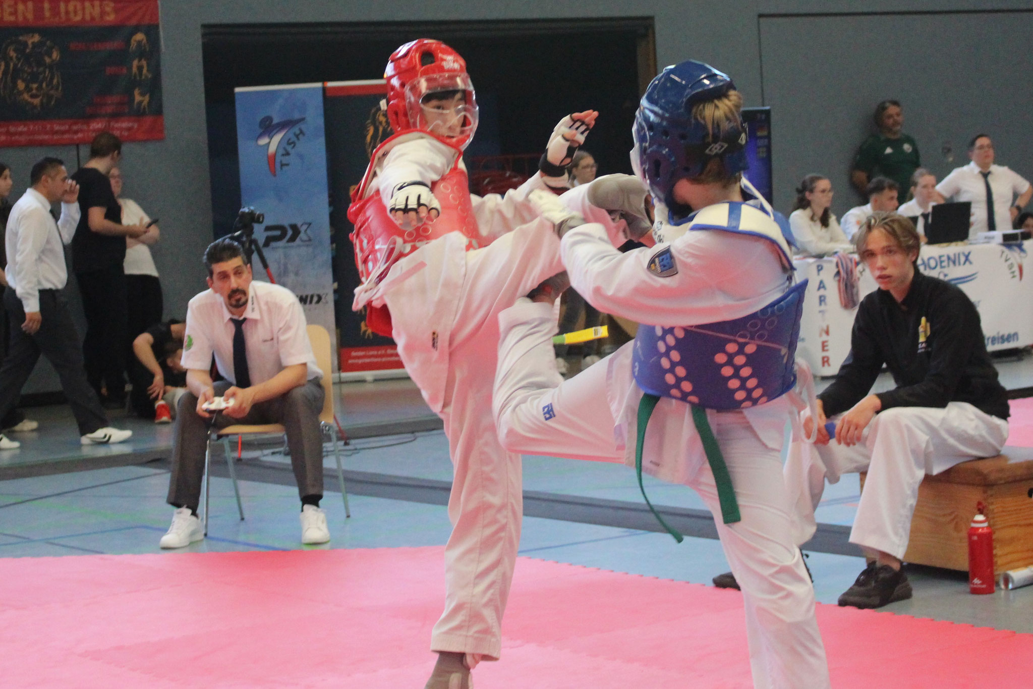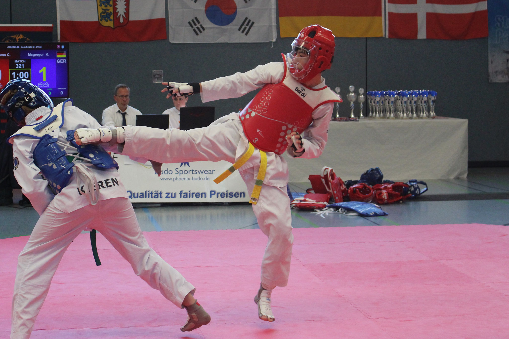Conrad gelangt bei der B-Jugend bis 61 kg direkt ins Finale, schlug dort den ranghöheren Garbsener C. Meininger überlegen per Point GAP (Rundenabbruchsiege 13:0, 13:0) und holte sich mit sauberen variablen Kopftreffern verdient den Turniersieg.