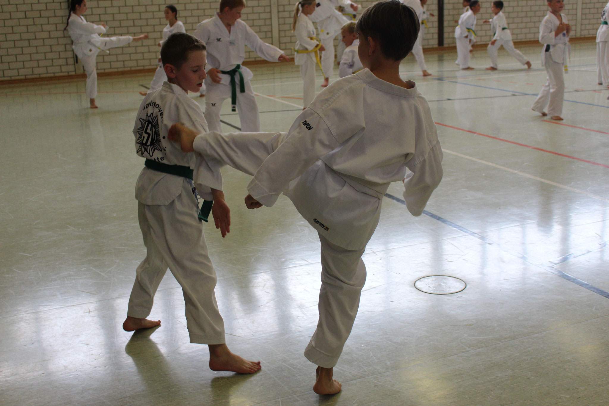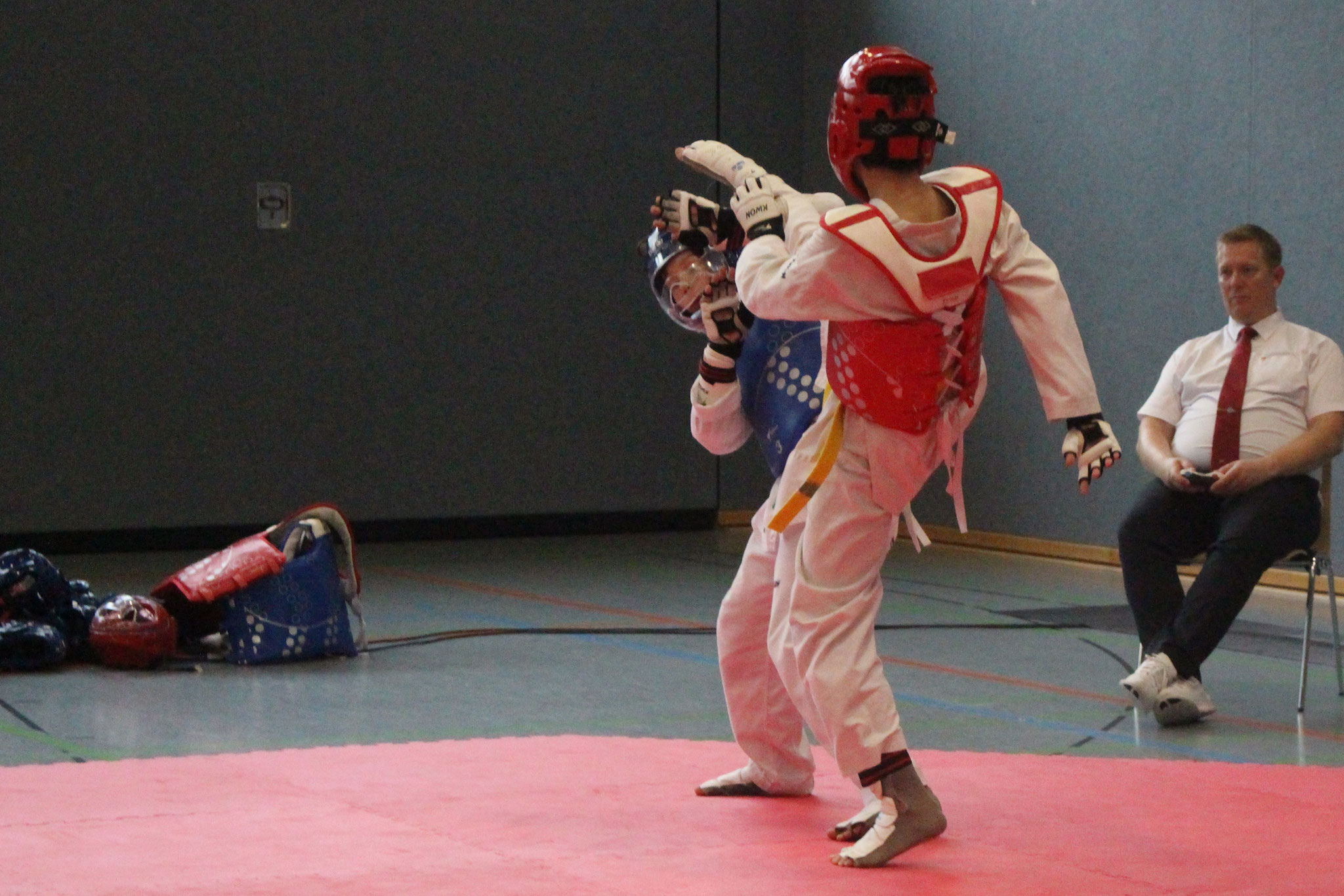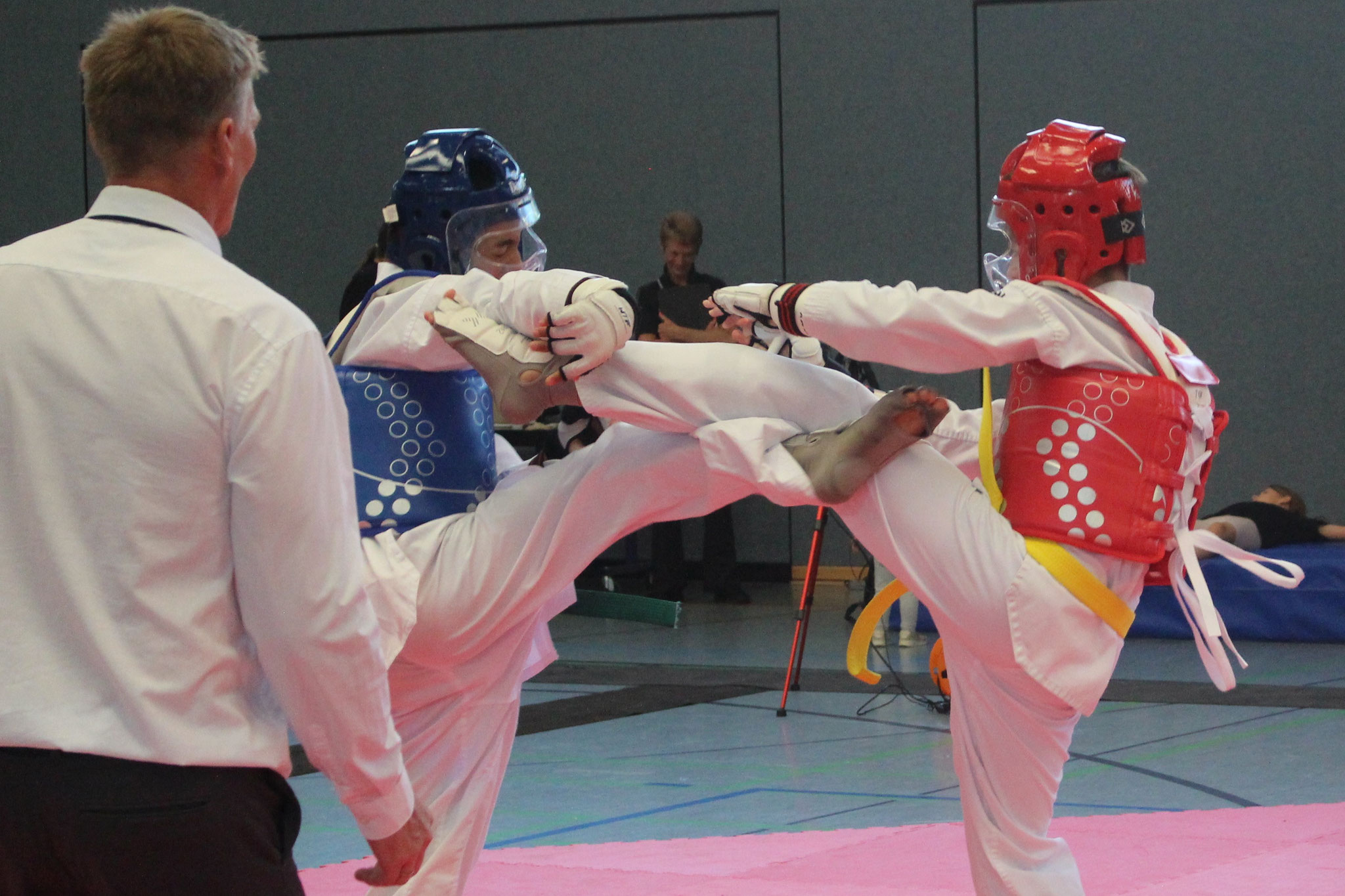 Um den Prüfer nicht für nur zwei Personen nach Arnum zu bestellen, wurde für Monas und Conrads Kup-Prüfung der Trainingsort des Prüfers vereinbart. Nach einstündiger Fahrt war es dann soweit. Unter den Augen des erfahrenen Bundes-A-Lizenz-Prüfers Wolfgang Falke (5. Dan) konnten Conrad und Mona, beide aktive Wettkämpfer, ihre Prüfungsfächer (diverse Kampffächer, jedoch ebenfalls Grundtechniken und Form sowie Theorie) bei durchweg guter Leistung abliefern und sich den nächsten Kup verdienen. Conrad bestand somit den 7. Kup und glänzte insbesondere in den Kampffächern. Für Mona bedeutet die bestandene Prüfung eine besondere Situation, da sie mit dem 4. Kup in die obere Leistungsklasse bei Wettkämpfen wechselt, aus der es kein Zurück mehr gibt. Auch sie konnte in allen Fächern überzeugen und bewies ihre besondere Klasse im Kampfbereich.