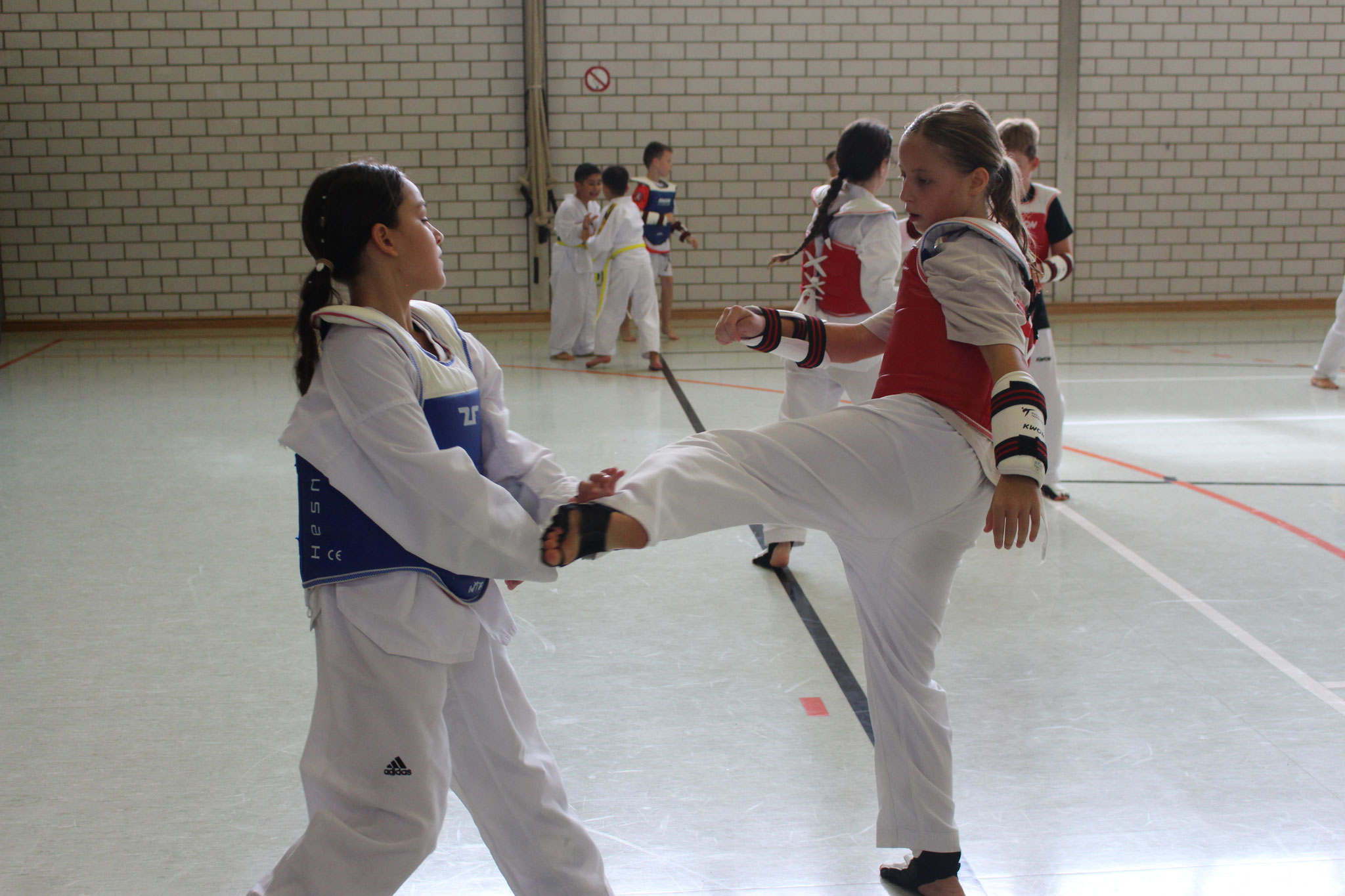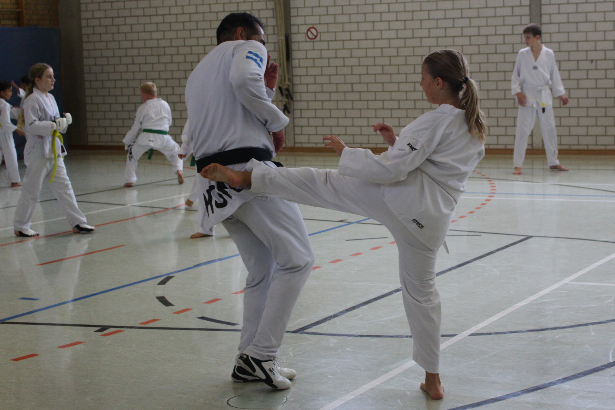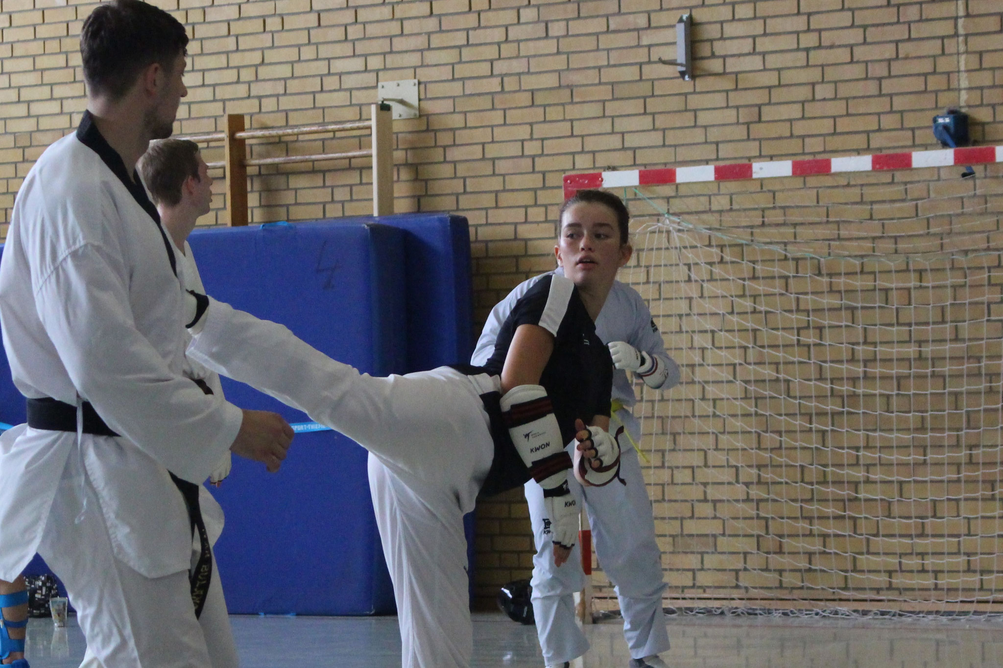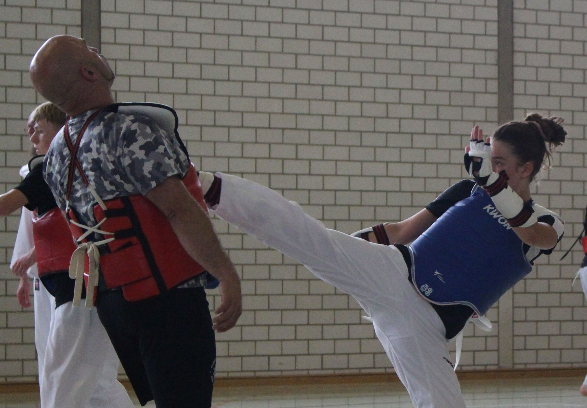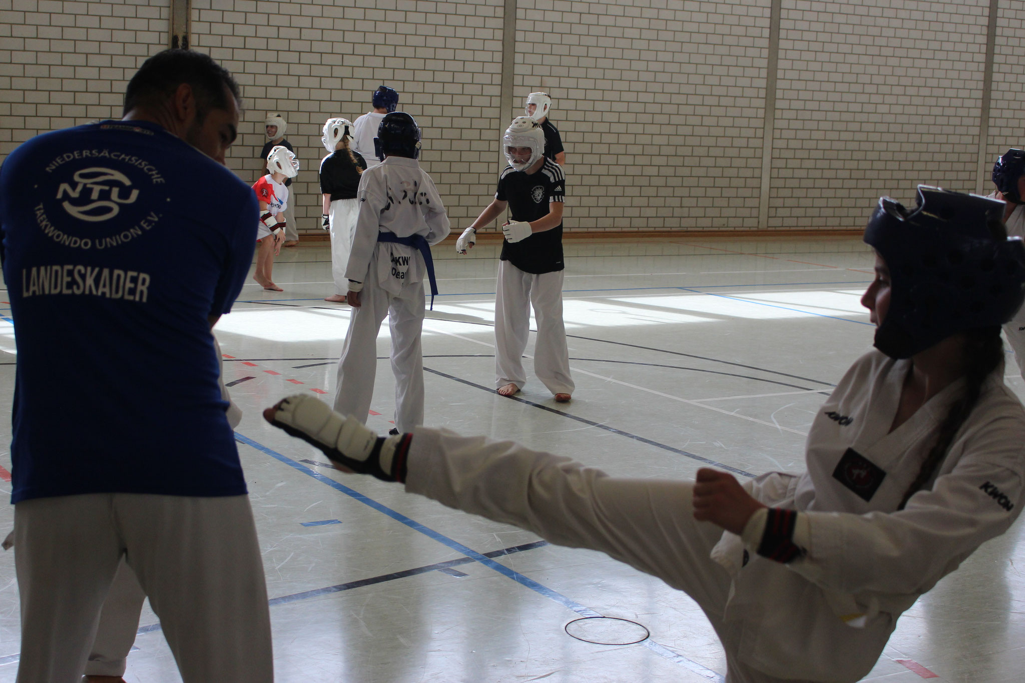 Am Zeugniswochenende gab es keine Freizeit für Mona; sie nahm am Wochenendlehrgang des Landeskaders Vollkontakt der Niedersächsischen Taekwondo Union e.V. in Westerstede teil. Die Zeit im Westersteder Hössen Sportzentrum wurde vollgepackt mit abwechslungsreichen Trainingseinheiten. Zwischen Lauftraining am frühen Morgen über Kampftechnikübungen, Partnertraining, Konter- und Sparringsübungen, Krafttraining und Theorieeinheiten wurden die Pausen knapp. Landestrainer Rakip Dumlu, Ivan Bulanovic und Eduard Drewlau gestalteten ein lehrreiches und wirkungsvolles Training, aus dem Mona viele Anregungen ins Heimtraining mitnehmen konnte. Angenehme Unterbringung und Verpflegung gab es on top.