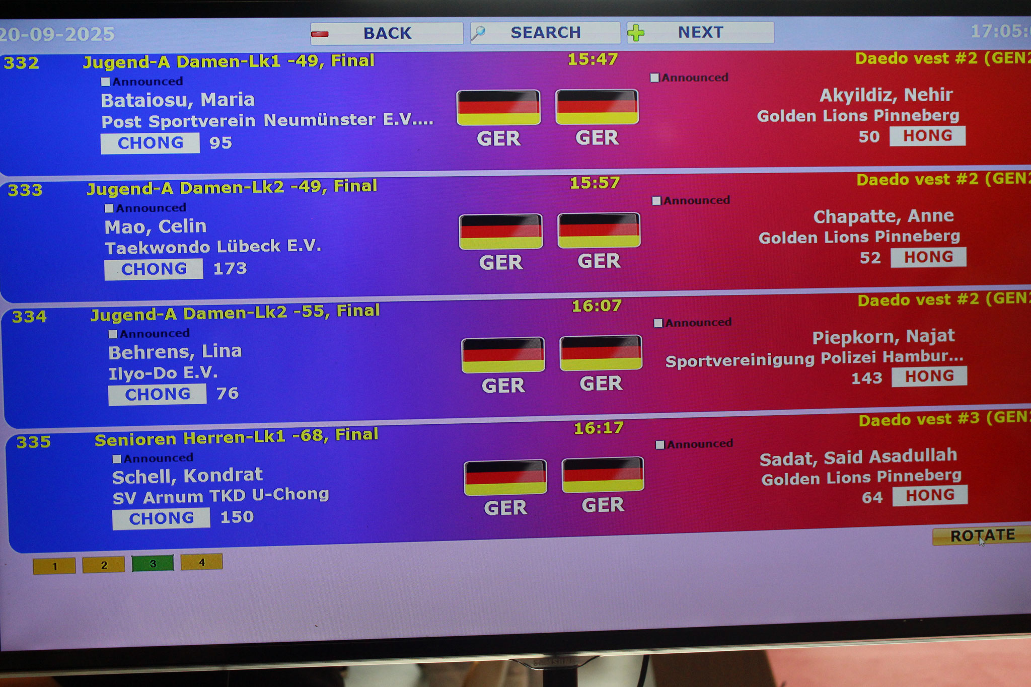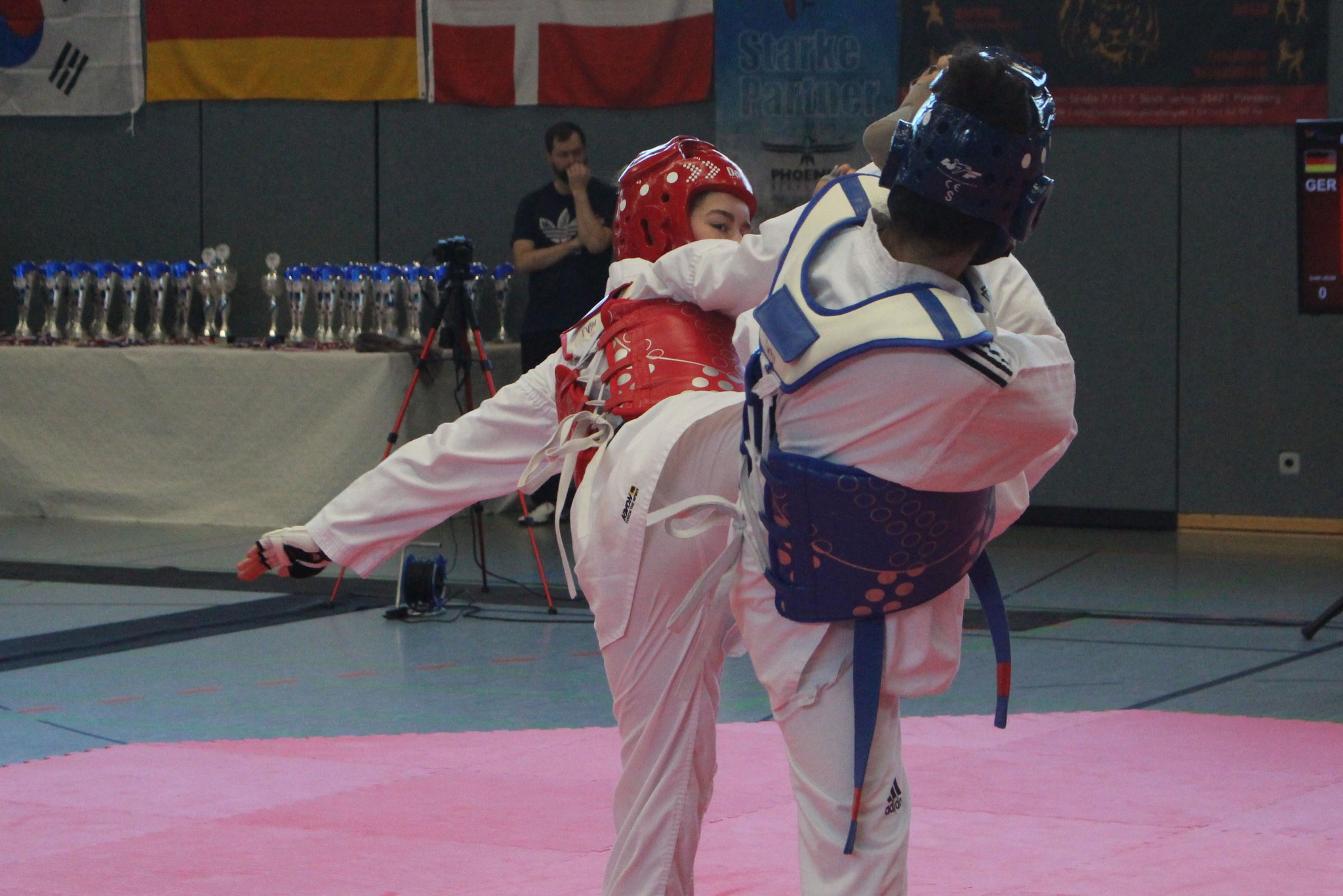 Im anschließenden anspruchsvollen Finale gegen die ebenfalls gleichrangige Acelja Macit (TKD Lünen) gelang ihr kurz darauf ein Zwei-Runden-Sieg (3:2 und 13:0). Auch in diesem Kampf zeigte sich die im Vorfeld erarbeitete technische und taktische Weiterentwicklung und wurde mit einer verdienten Goldmedaille belohnt.