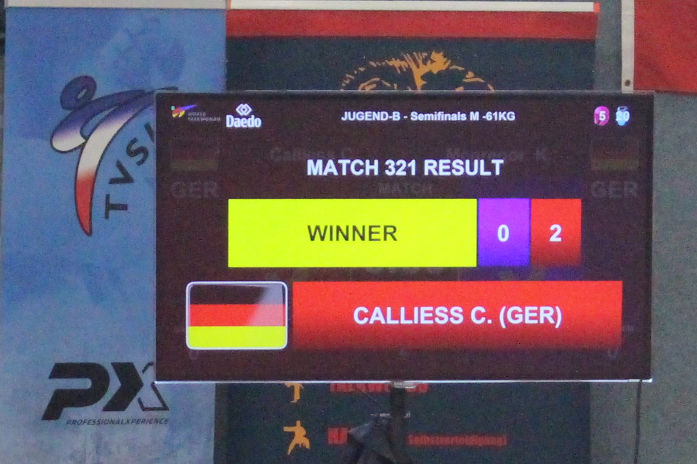 Für Conrad, der auf der schwierigeren Poolseite der B-Jugend -61 kg gelandet war, gab es im Halbfinale mit B. Patler, dem späteren Turniersieger, einen unbequemen Gegner. Obwohl es Conrad gelang im Verlauf des Kampfes viele Treffer zu landen, konnte sich der erfahrenere Garbsener letztendlich durchsetzen. Mit seiner individuellen Kampfleistung und seinem vollen Einsatz darf Conrad, der bis zum Ende alles gab, jedoch mehr als zufrieden sein. Bronze war hier nicht geschenkt.