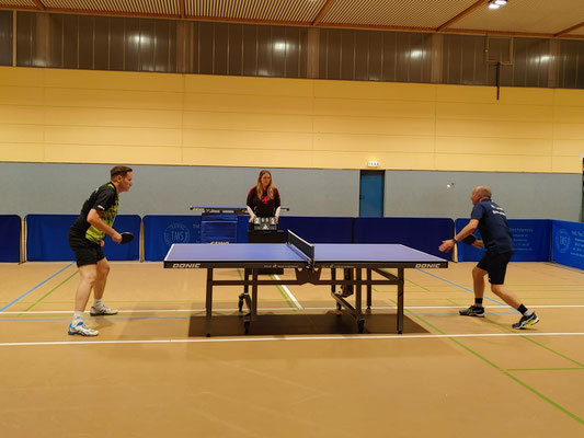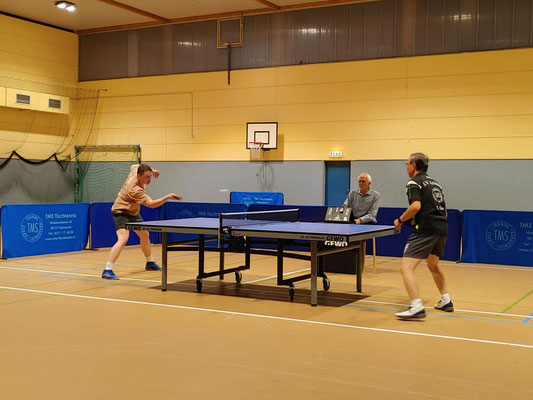 Lennart hatte gegen Thomas Bär das glückliche Händchen, genau so wie Tuyen Tinh gegen Ernst Niehoff und Sascha gegen Thomas Kurpjeweit. Alle Spiele endeten mit 3:2 Sätzen. Auch Achim Dumsch konnte Marco nicht stoppen und musste sich mit 0:3 geschlagen geben.